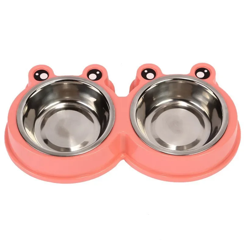 Manufacturer spot new stainless steel pet double bowl, plastic pet bowl cartoon dog bowl cat bowl, feeder wholesale